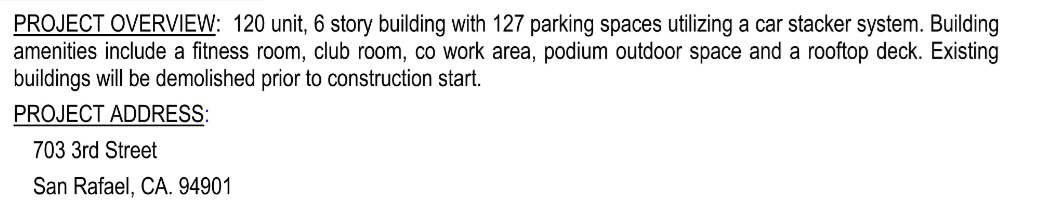 The project proposes to redevelop and consolidate two contiguous Downtown parcels, currently developed with existing one- and two-story commercial buildings and associated surface parking. The project proposes to construct a 6-story, 73’-tall, mixed-use building with 120 rental units or apartments above a 969 sq. ft. commercial space and 121 garage parking spaces, including 112 mechanical parking lifts.